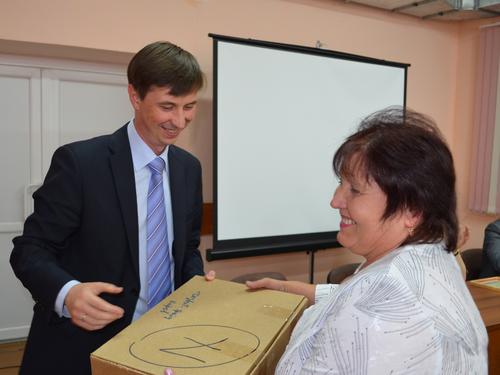 Вручение подарков отделениям больницы.