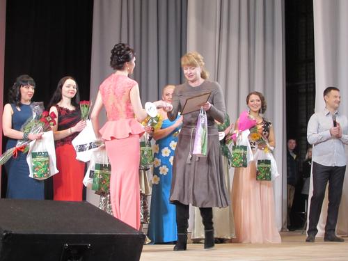 Министр здравоохранения Кировской области Е.Д.Утемова вручает Юлии Филимоновой приз в специальной номинации «Мисс позитив».