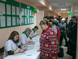 Параллельно с приемом в ЦРБ работал Центр здоровья Северной клинической больницы скорой медицинской помощи. У всех желающих была возможность пройти комплексное обследование на оборудовании центра: проверить работу сердца, легких, глюкозу в крови, пройти психологический тест и получить индивидуальные рекомендации от врача по ведению здорового образа жизни. Всего обследование в Центре здоровья прошли 77 человек.