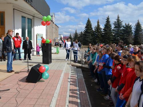 ОНКОпост в Уржуме: спортивно-оздоровительная игра для молодежи "Мы выбираем жизнь!", участников приветствует глава департамента здравоохранения Е.Д.Утемова.