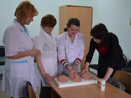 Перед началом акции начальник Центра медицинской профилактики О.Г.Малышева провела для специалистов первичного звена мастер-класс по обследованию молочных желез.